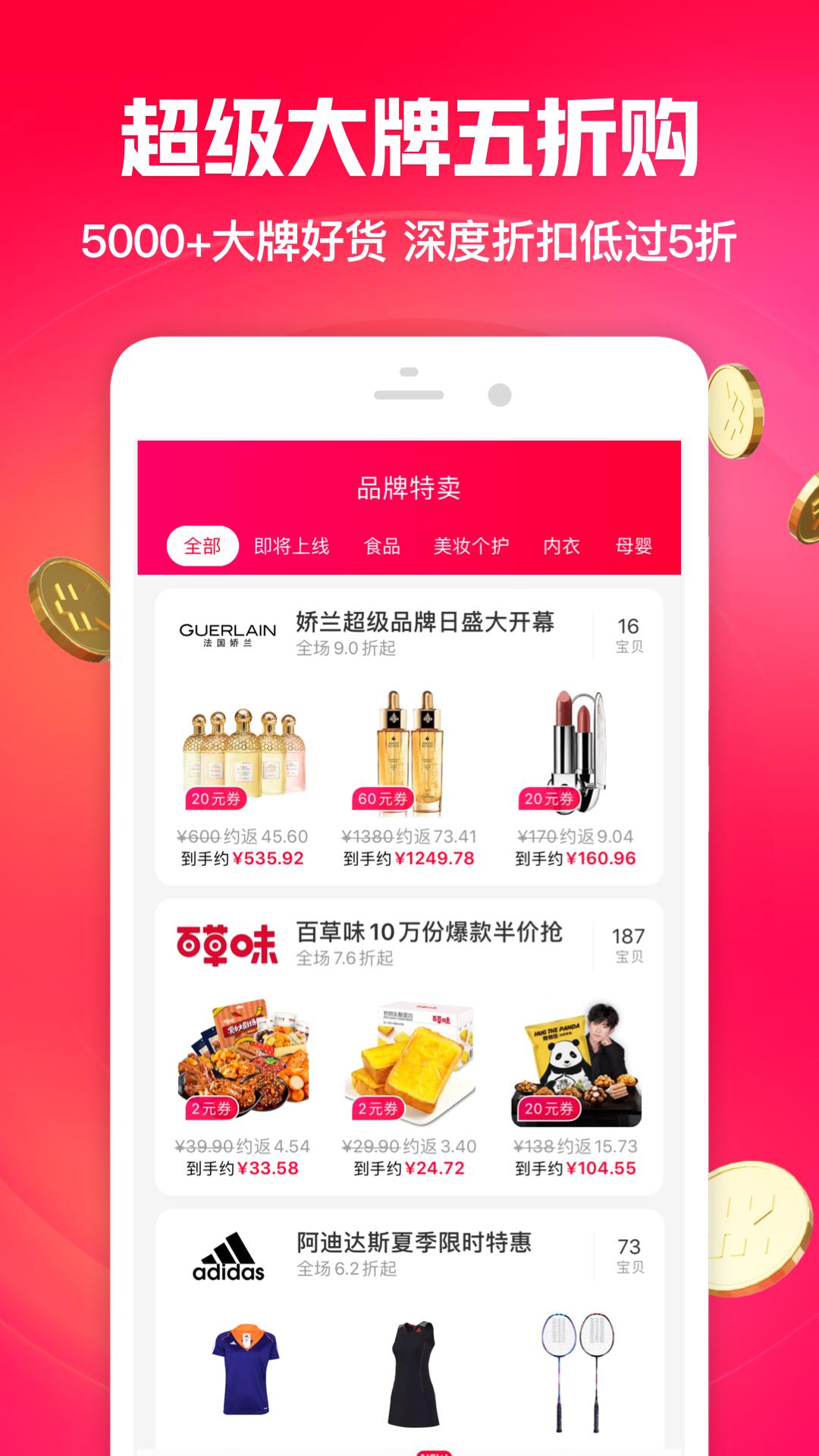 2、特卖商品,平台上面的商品都是淘宝还有天猫的特供商品,购买的时候能享受到大额的返利以及高额的优惠立减。