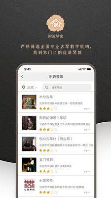 1、附近琴馆搜索,智能定位你所在的位置,快速搜索附近的古琴学习琴馆。