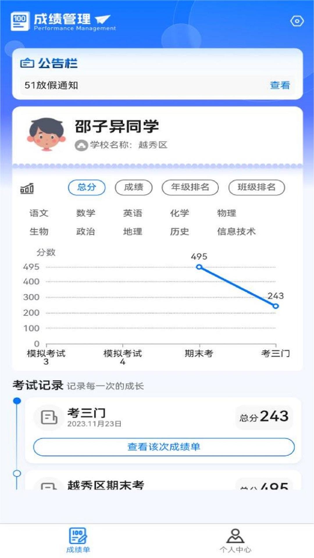 百分成绩管理系统app是一款辅助考试学习的软件,这款软件可以成绩查询,也可以对于学生的成绩进行一个统计管理,用户可以在这里看到学生的学习变化,从而辅助用户得出一个结论,尽快帮助学生取得优秀的好成绩,软件功能简单并且实用强大,快来下载试试吧!