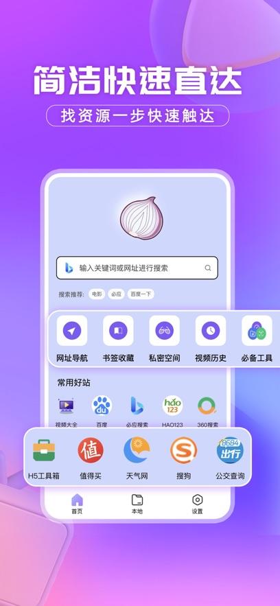 洋葱浏览器app是一款以必应搜索为主引擎的浏览器软件,app采用简约的风格,无广告弹窗,主打的是视频流畅播放,支持免费保存39g的空间,一款适用的浏览器缓存软件,可以下载各种视频和图片,喜欢这款浏览器软件的用户赶紧下载吧。