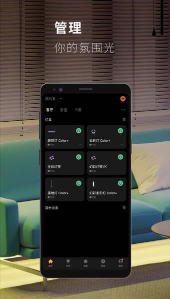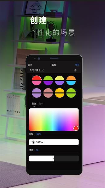 调整它们的亮度、色温、选择数百万种颜色。还可将设定的效果保存成场景,便于以后的调用。