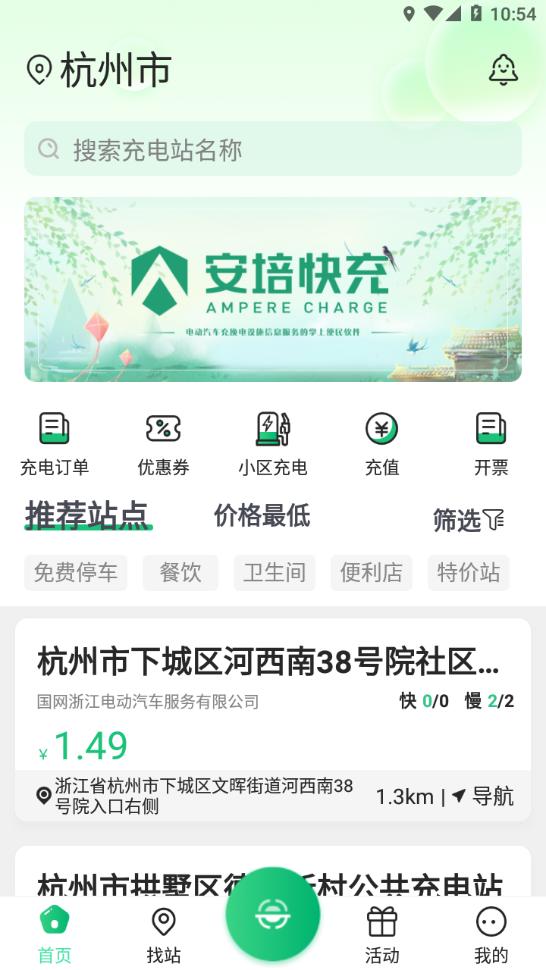 安培快充覆盖浙江全省的电动汽车充电桩数据,让您的手机随时随地快速查找充电站点位置,实时查询快慢充电接口数量及空闲数量,导航前往充电站点,点评充电过程体验。