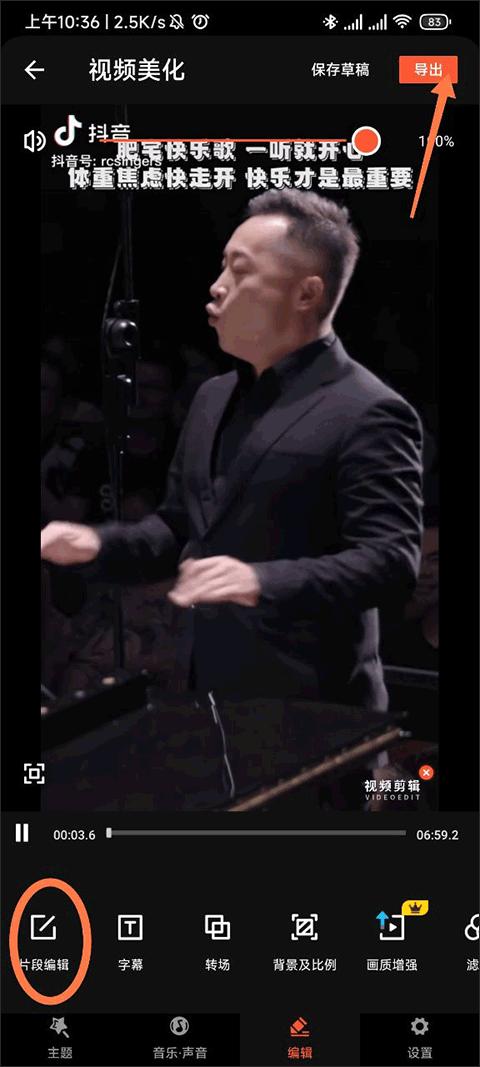 4、【编辑】中可以添加各类素材,以及针对单片段进行编辑。