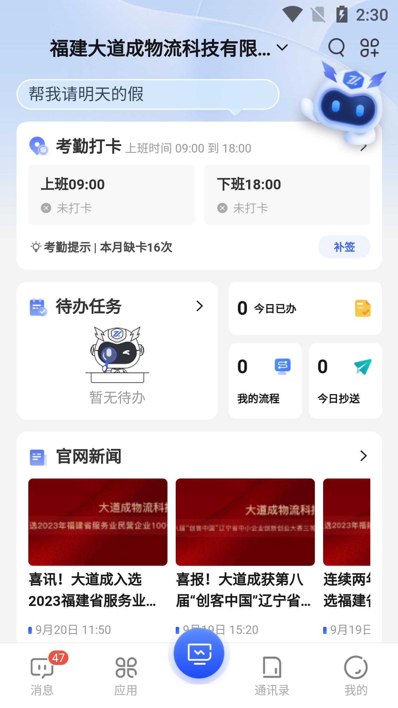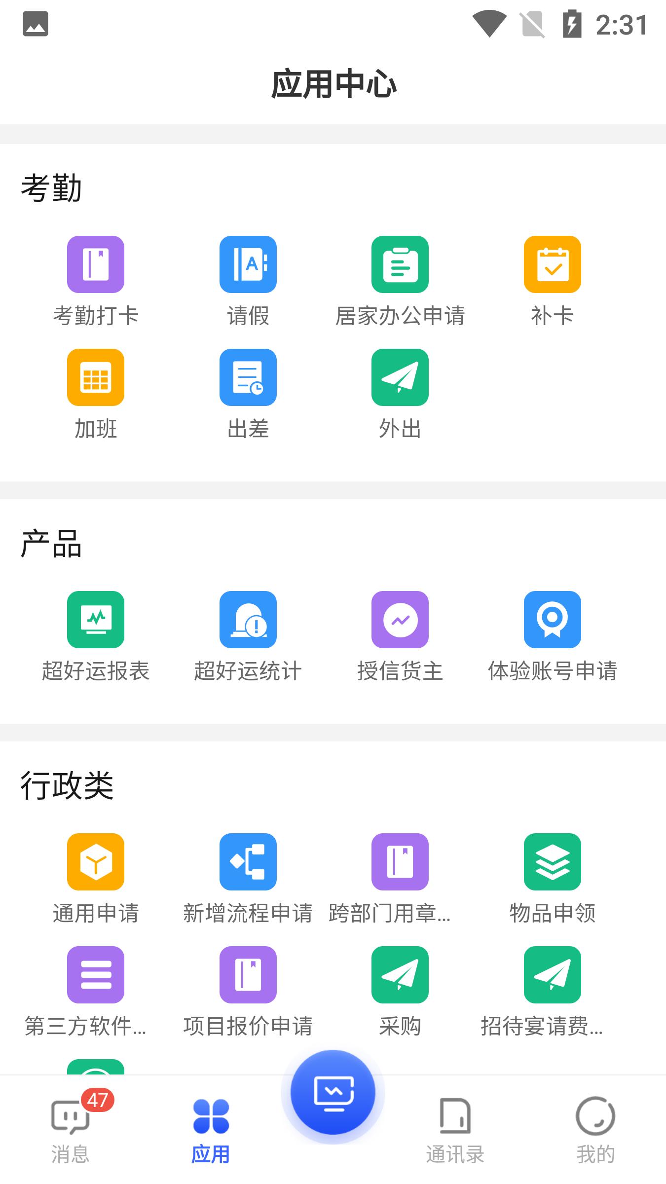 不用见面,在线就能实现请假、居家办公、补卡和加班等申请;