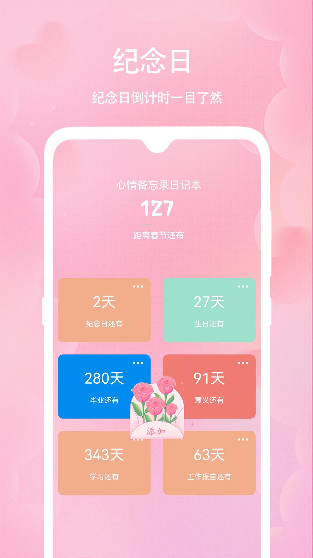 具有倒数日功能,支持用户设置各样节日、生日、纪念日的倒数日。