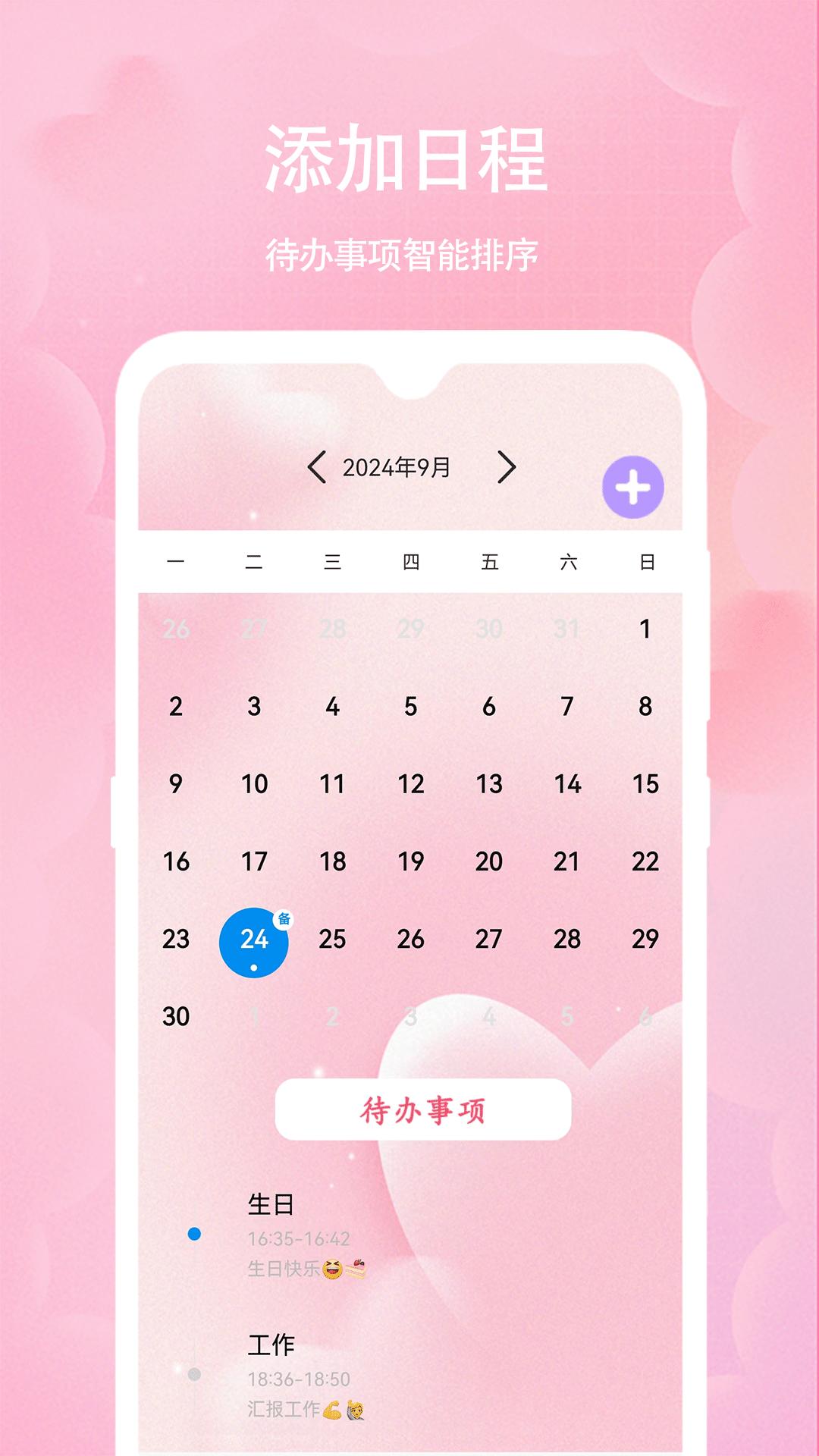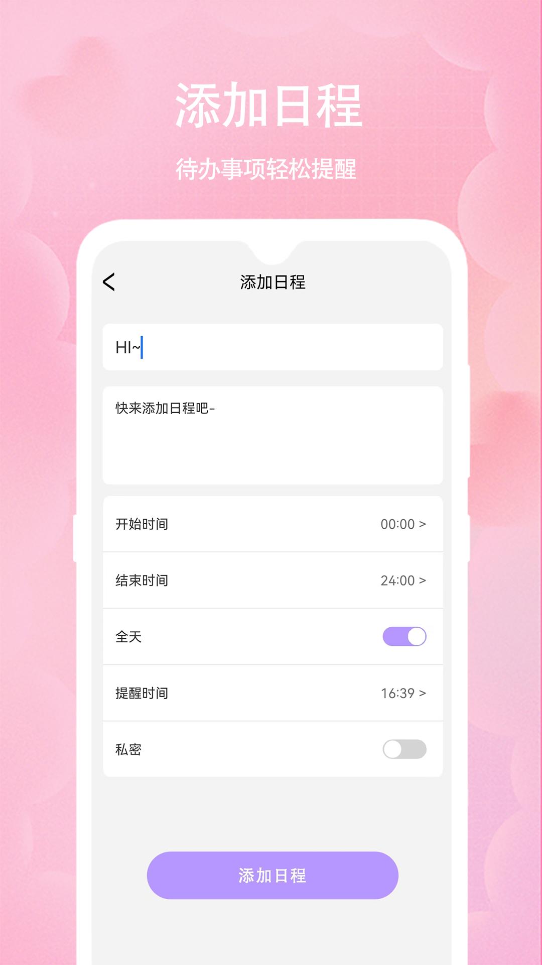 支持添加日程,用户可随时在软件日历上添加你的待办日程。
