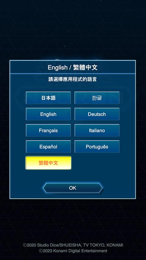 用户首次进入游戏王neuron时,就有一次选择语言的机会,此时勾选【繁体中文】即可设置中文语言。
