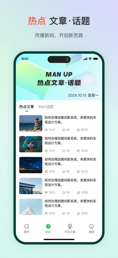 Man Up app是北京龙崛科技有限公司倾情推出,软件拥有首页,Man,天空之城,我的等板块,涵盖了环境问题,养老问题,食品问题,就业问题,教育问题,结婚养娃等方方面面,功能强大,使用方便,感兴趣的朋友可以下载看看。