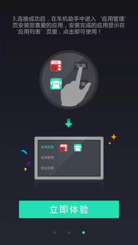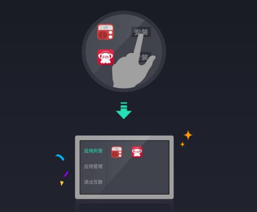 3.连接成功后,在车机助手中进入‘应用管理页安装您喜爱的应用,安装完成的应用显示在应用列表”页里,点击即可使用!
