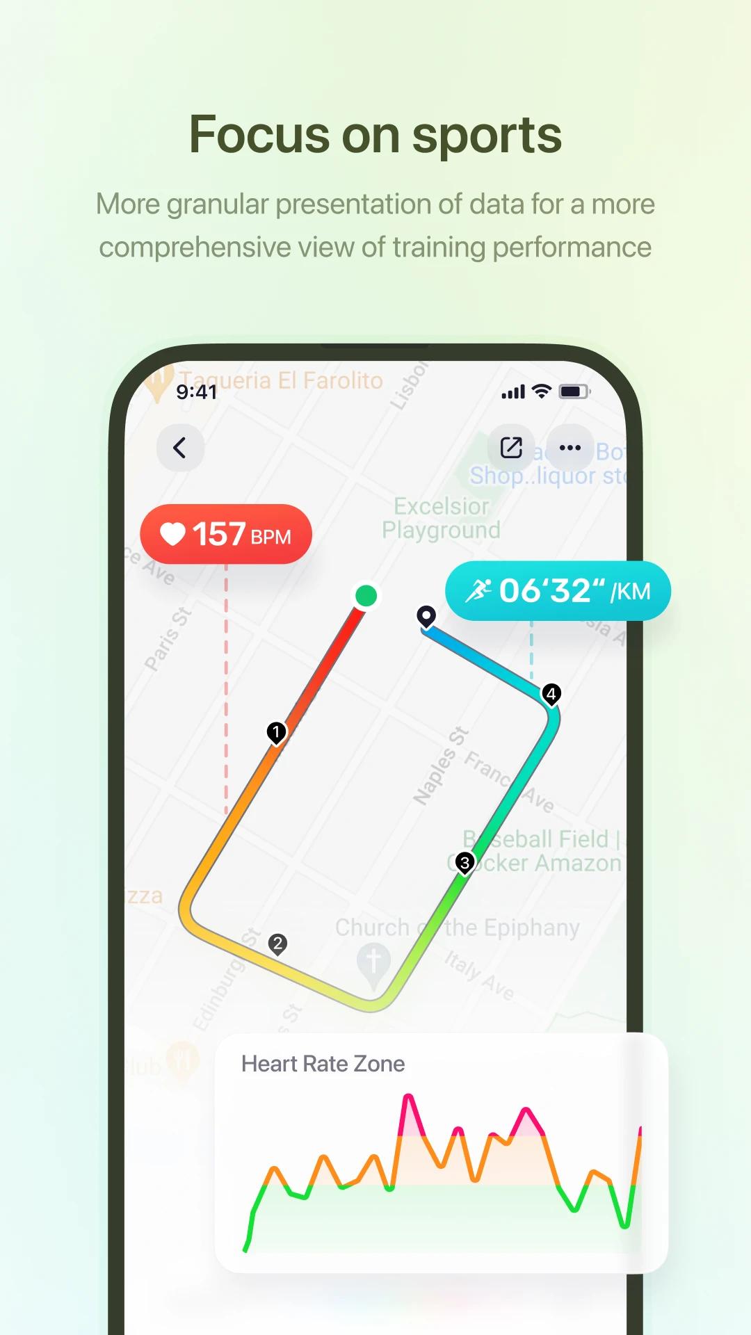 精准记录步数、距离、卡路里消耗,支持多种运动模式,包括跑步、骑行、游泳等,自动识别并记录运动状态。