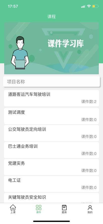 巴士公交在线培训app下载安装最新版免费是一款在线培训学习平台,平台拥有上课,课件,题库,我的等功能板块,可以帮助更好的培训学习,需要的朋友欢迎前来下载使用。