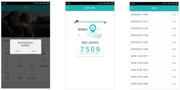 4. 点名开始若收到数字点名签到通知,点击「确定」