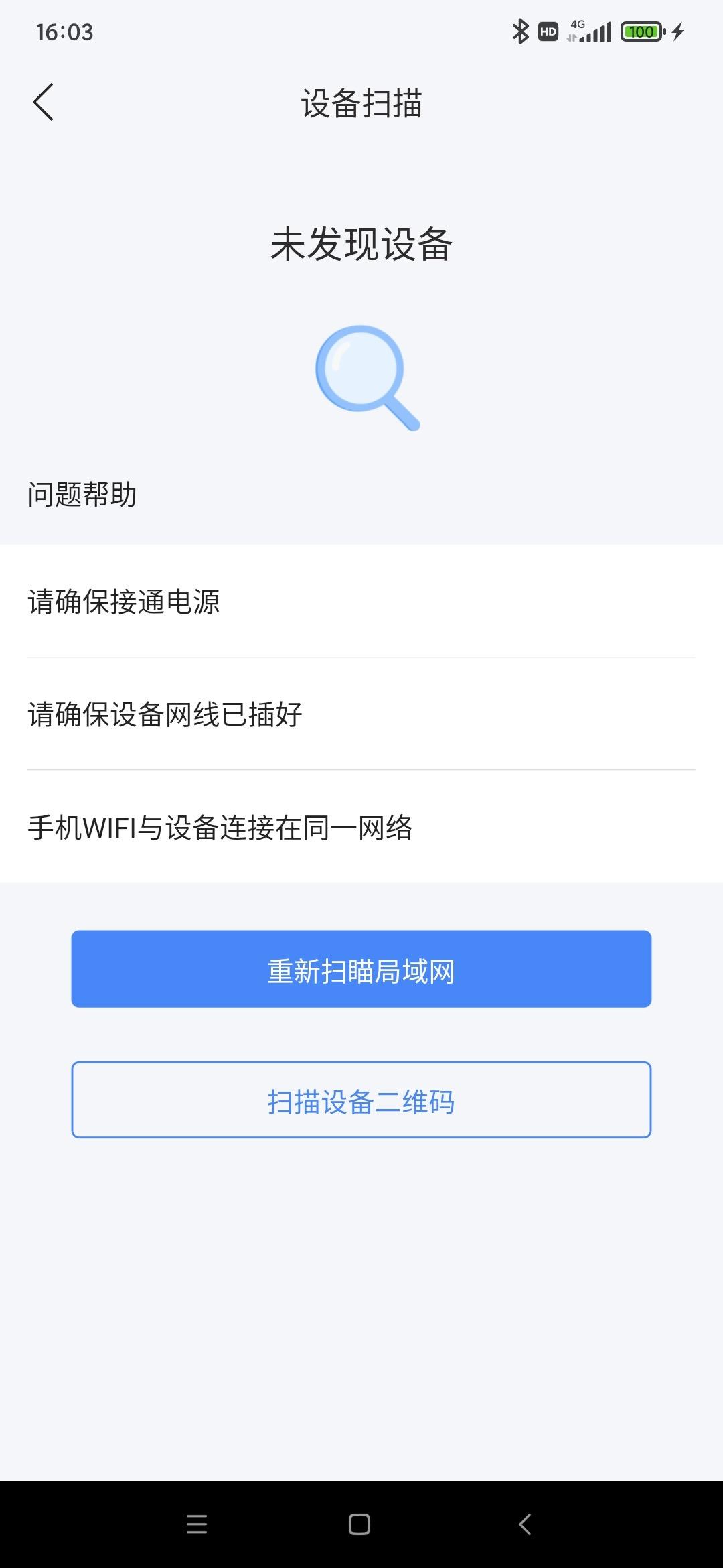 如果未能发现设备,可以选择“扫描设备二维码”,用手机扫一扫设备机身背面的二维码绑定设备。