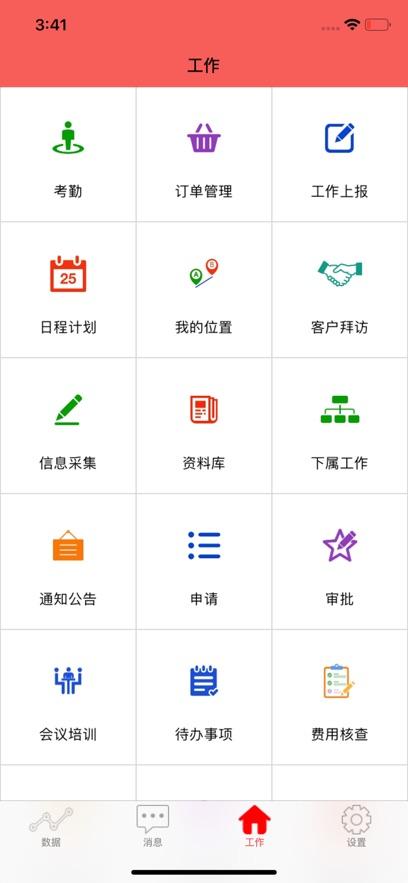 软件具备:手机考勤、定位轨迹、工作日报、客户管理、客户拜访、订单管理、商品库存、入库出库、通知公告、信息采集、资料库、通讯录、在线沟通、申请审批、数据分析等多种功能。