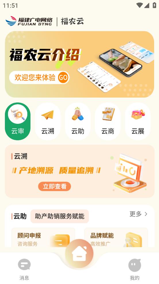 福农云app下载安装是福建优福农业科技有限公司倾情推出的一站式农业服务平台,平台拥有云审,云溯,云助,云商,云展等等功能,可以助力品牌打造, 生态建设,打造“农业+互联网”新服务,需要的朋友欢迎前来下载使用。