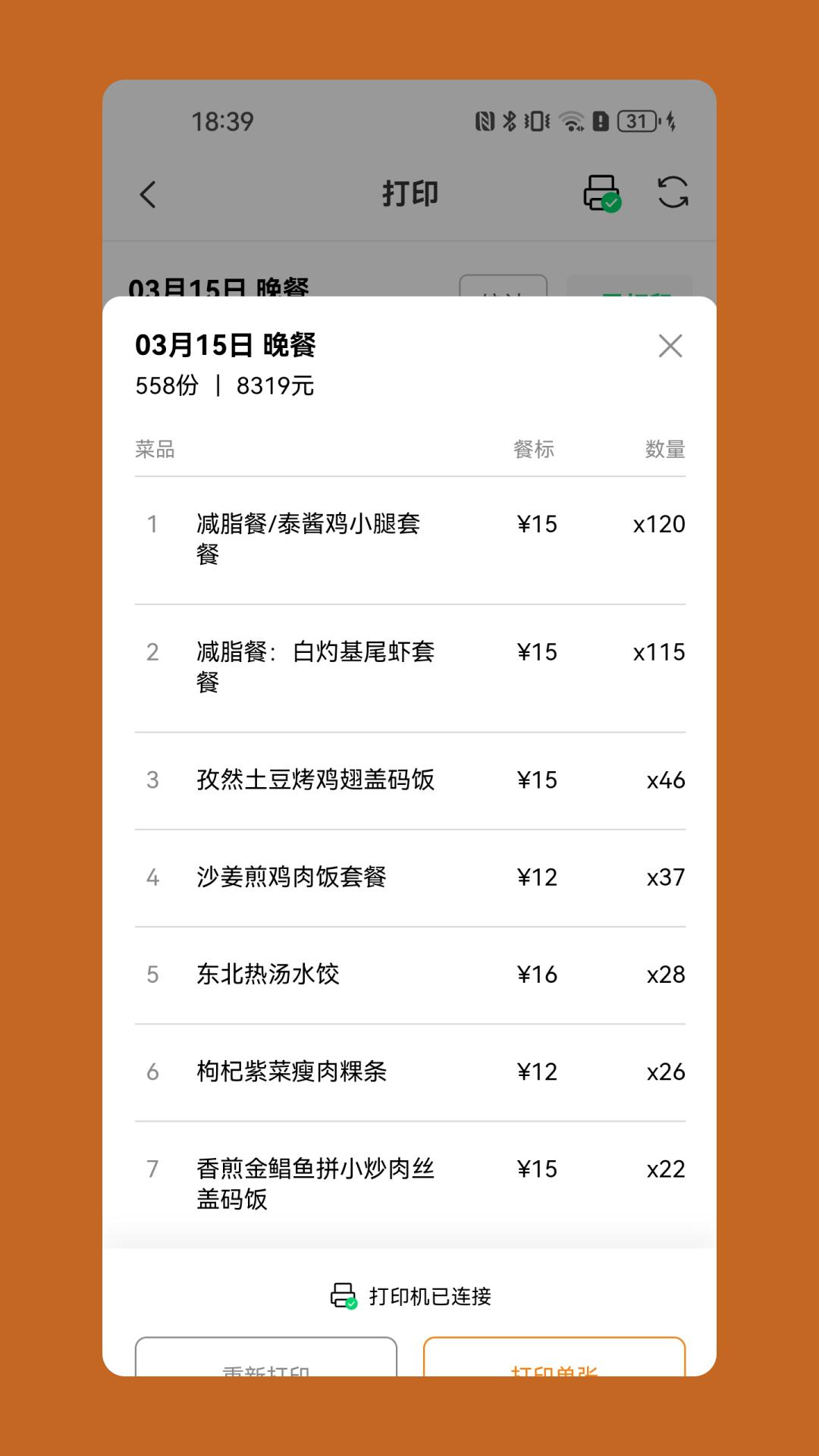 每次在点餐的时候都会统计订单,还能直接查看订单明细;