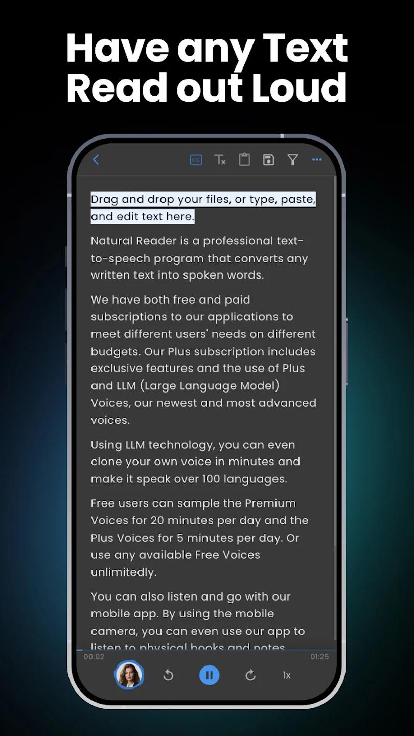 NaturalReader 是一款移动应用程序,可以朗读各种文本,如 PDF、在线文章、云文档,甚至是相机拍摄的图像等等。