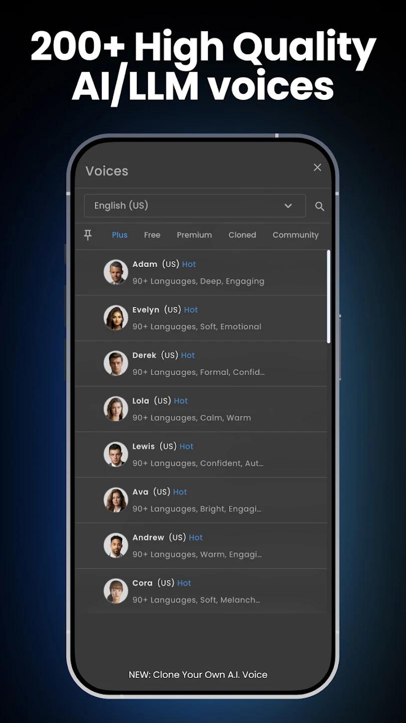 -- 自然语音:享受超过 20 种语言/方言的 130 多种人工智能语音可供选择,包括我们的 plus 语音,这是人工智能语音的最新和最高技术。