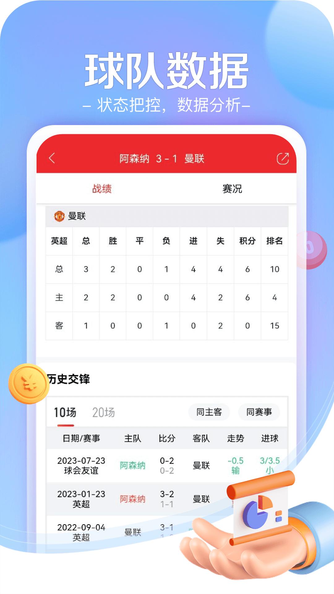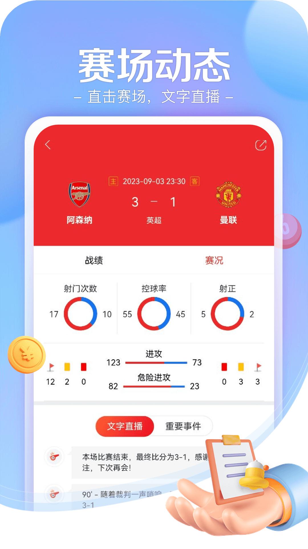 英超、西甲、意甲、德甲、法甲、日职联、K联赛、英冠、澳超、世界杯、欧冠、欧洲杯、亚洲杯、NBA等各级别足球篮球热门赛事应有尽有。比赛数据、赛程方便可查,即时比分实时可见。通过以往战绩及球队数据特征让您对球队了如指掌。