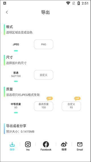 5、然后点击右上角的按钮即可对擦除后的照片进行保存,且可以自由选择保存的格式、尺寸、质量等等,也能直接进行分享;