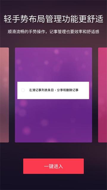 2、顺滑流畅的UX手势操作:记事管理也要和舒适感