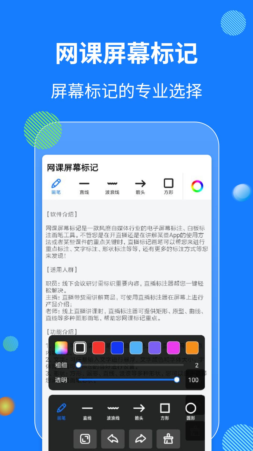 1.画笔功能:用户可在直播和网课中使用画笔,随意调整画笔的粗细、颜色、透明度,对重点内容进行标注。