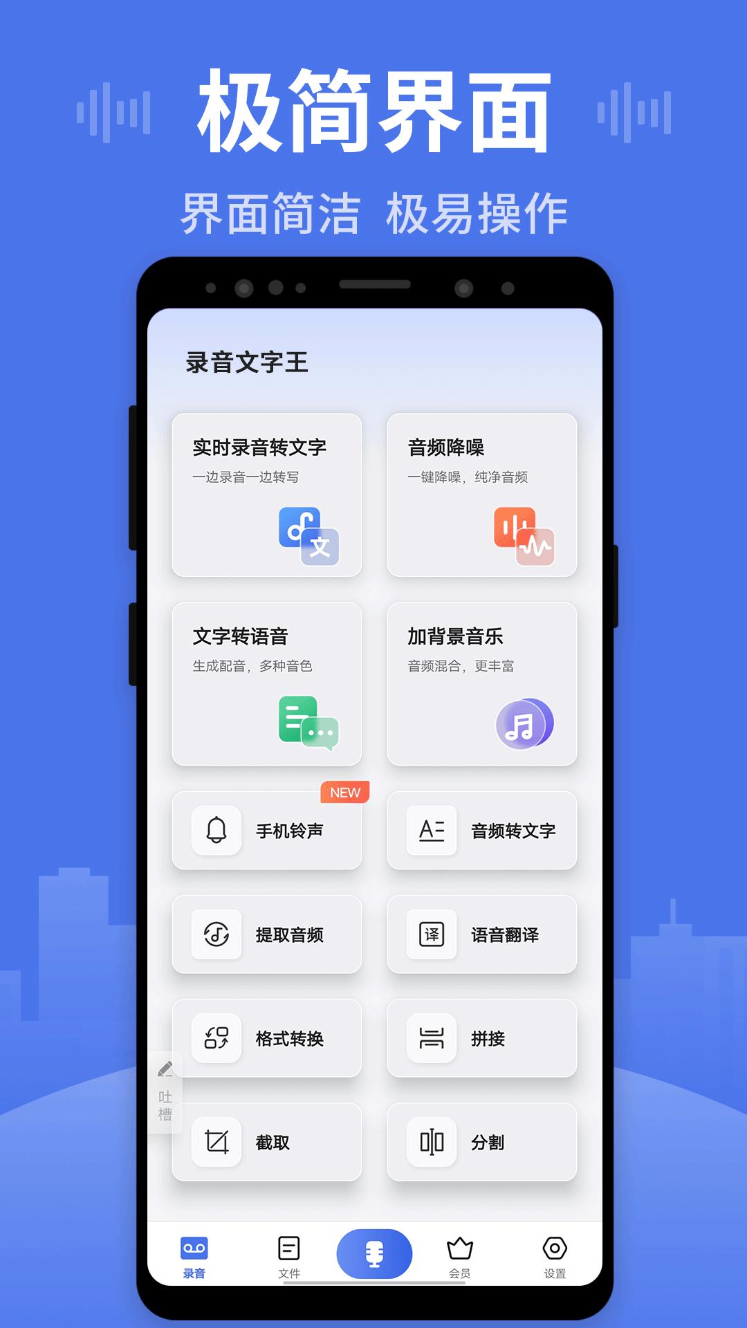 满足日常生活工作中语音转换文字、文字转语音、文字提取、语记听写、语音备忘录、通话录音、在线翻译等各种需求!