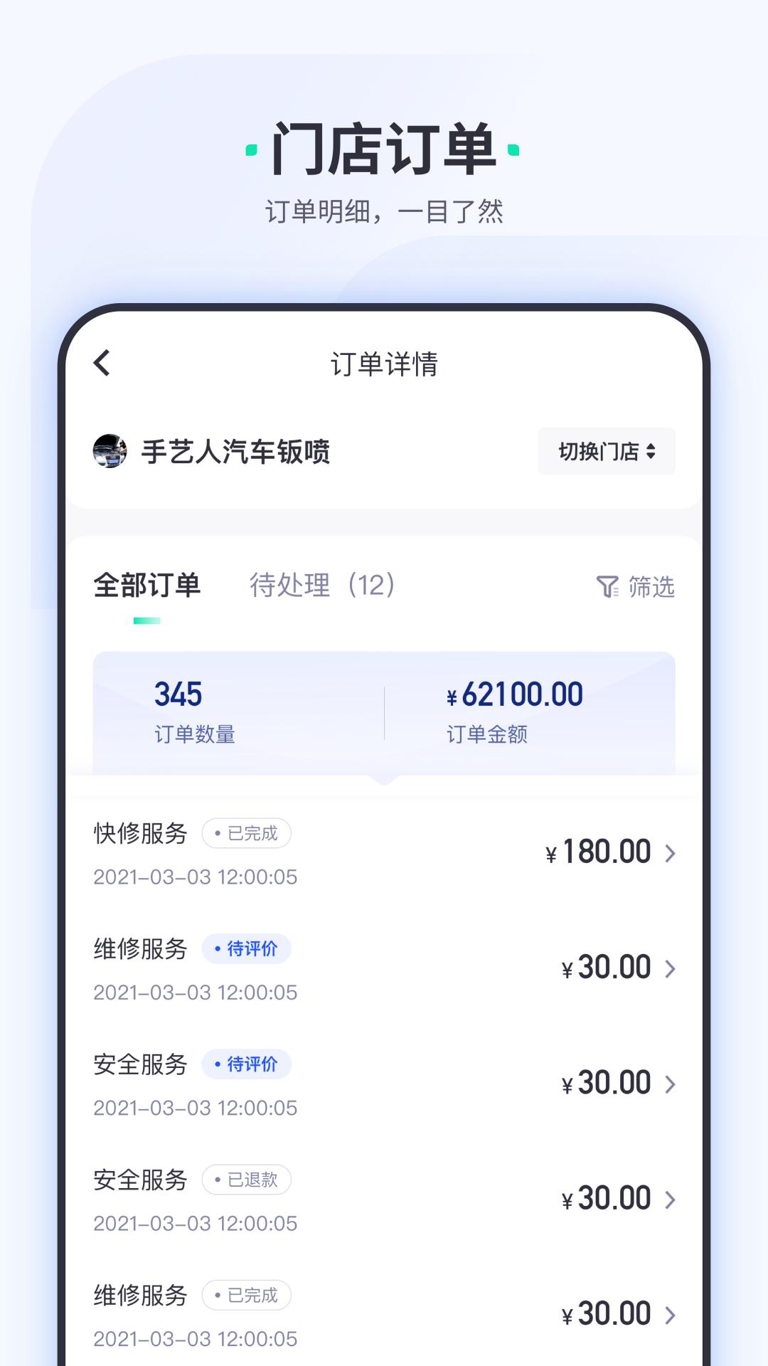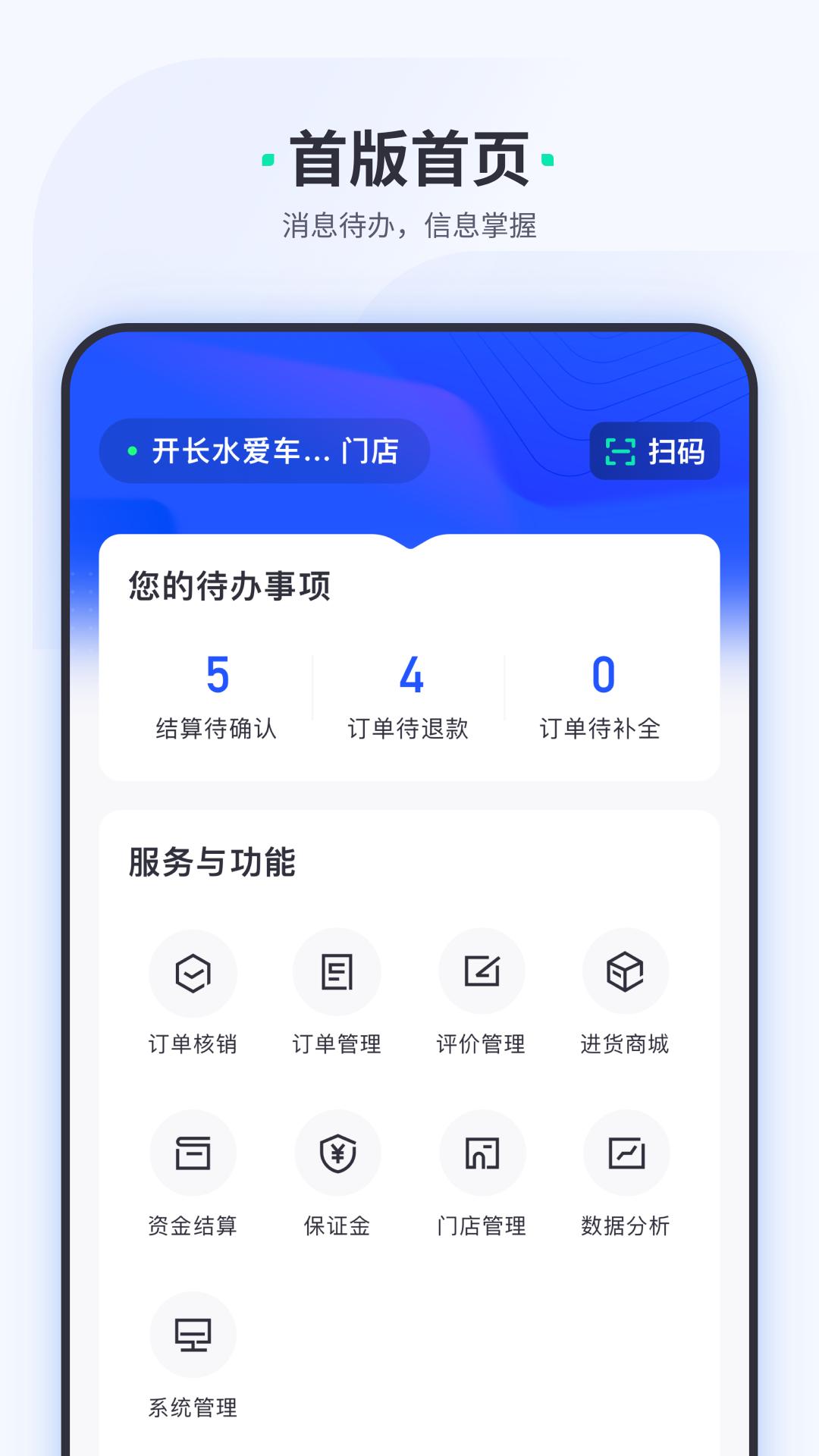 车主惠商户支持订单扫码、到店核销、订单管理、消息管理等功能,向车服务门店提供服务。