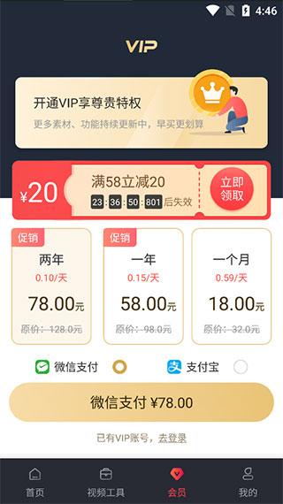4、会员页面,会员充值可享受素材模板、高级功能的使用
