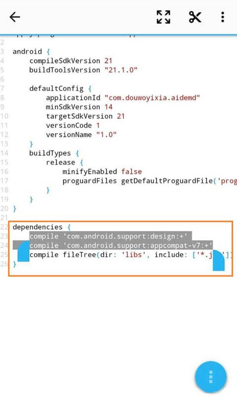 (或者直接打开app目录下的build.gradle文件,将下面的代码复制到