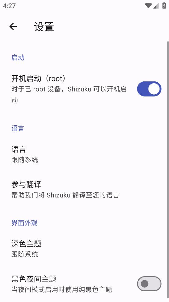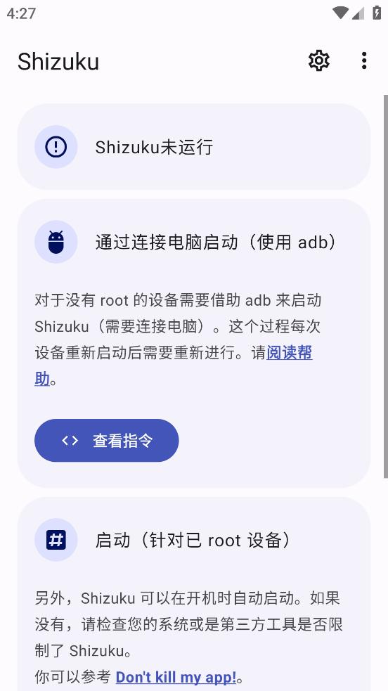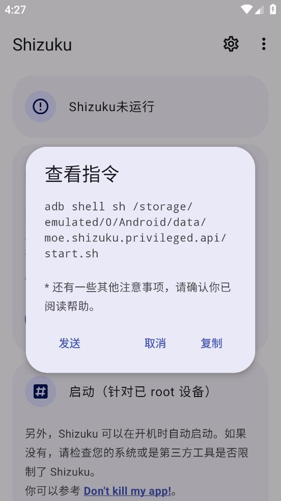 通过无线调试启动/通过连接电脑启动:Shizuku 随机停止: