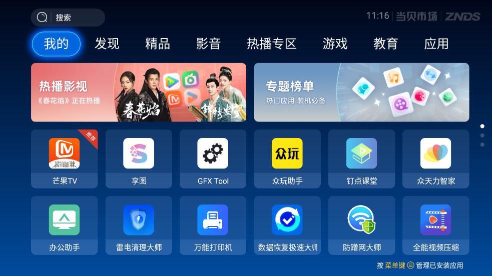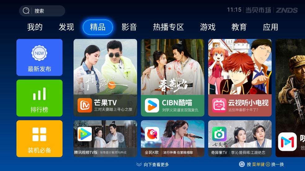 当贝市场专为智能电视和安卓电视盒子开发的应用app,旨在为用户提供丰富多彩的娱乐体验。当贝市场app下载汇聚了大量优质的应用和游戏,让你在大屏幕上尽情享受各种娱乐内容。无论你喜欢看影视剧、直播回放,还是玩游戏,当贝市场下载后都能找到你想要的。