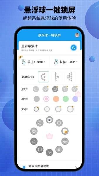悬浮球颜色、大小由用户自定义。