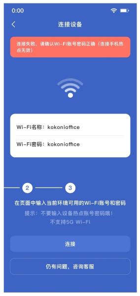(1)确认输入的用户名和密码是否正确,是否输入了当前环境下可用的WiFi,而不是输入了KOKONI3DP设备的WIFI