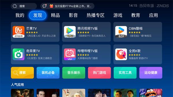 启动软件,简洁明确的分类和层级关系,让每一个打开当贝市场的用户都能立即上手。