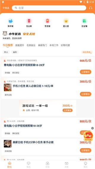 小牛兼职app是一款赚钱兼职类的app,app内可以找到不少赚钱app,还有各种各样的在家办公的工作等你来尝试,喜欢这款兼职软件的用户赶紧下载试试吧。