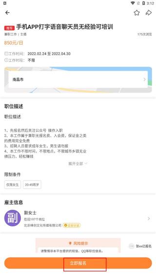 4、然后进入,这里有职位描述,如果你觉得适合的话可以点击立即报名;