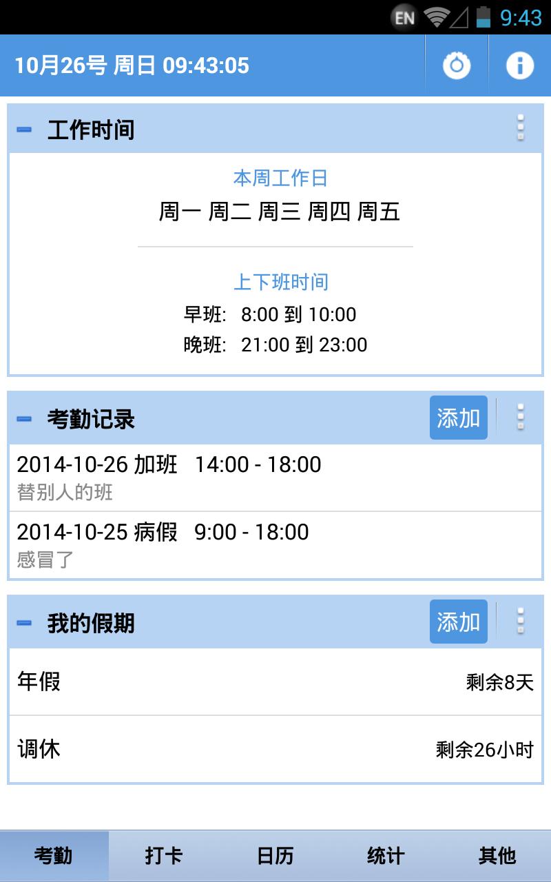 【考勤记录】记录考勤、假期信息,比如加班、请假、年假等