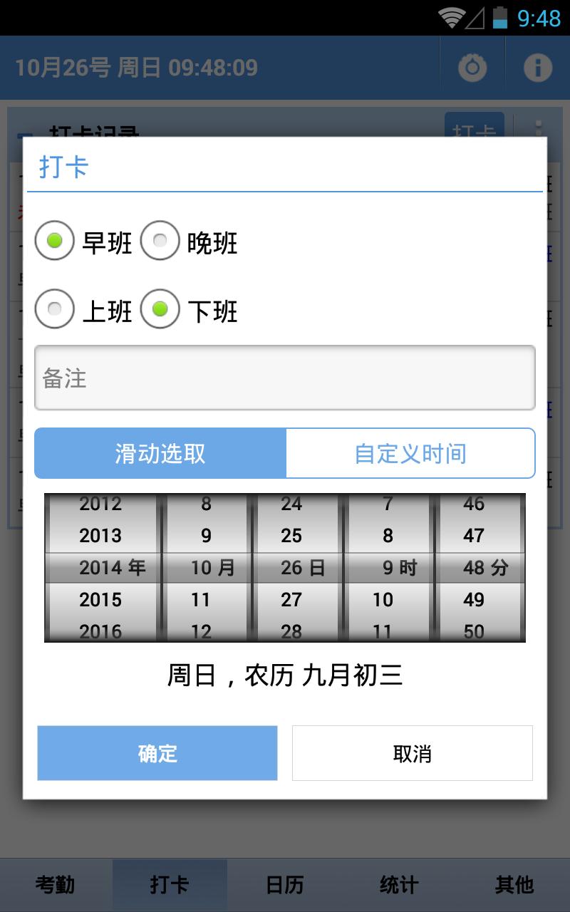 4、可自用设置本周工作日、上下班时间,支持弹性工作制