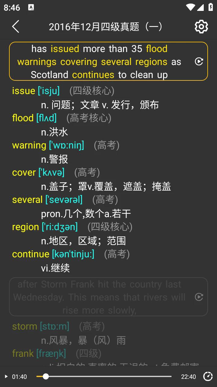 3、词汇标注:将字幕中出现的考纲词汇和短语进行高亮和翻译