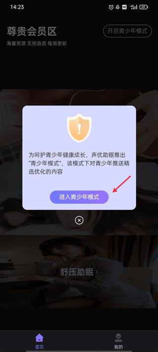 2、这时候会弹出一个提示,看完后就点击进入青少年模式。