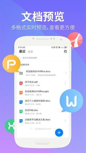 • 新增“文件雷达“功能,所有保存在手机本地的文件,都能被优云扫描并保存,文件搜索更方便