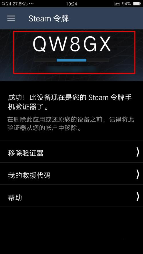 当手机认证器成功启用后,您将获得定时刷新的特殊的Steam令牌验证码。您登录Steam时需要输入此验证码。