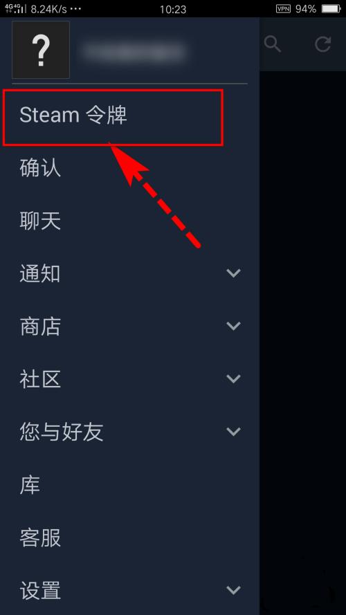 安装应用并登录Steam帐户后,点击左上角的菜单图标,打开应用的主菜单。在此菜单的顶部,选择“Steam令牌”。