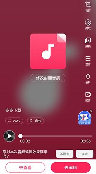 8、点击完成后即可自动保存所编辑的音频,如果你对内容不够满意还可再次点击“去编辑”进行更多的处理