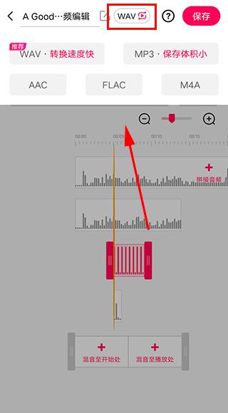 5、点击添加混音音频,按住音频首尾的手柄可调节混音的音频长度,同时长按可拖动调整混音的位置