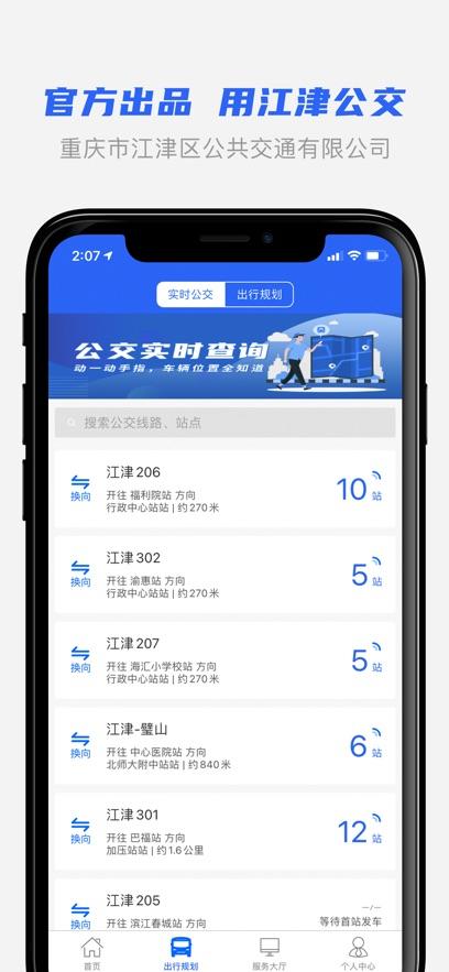 江津公交2.0app官方最新版是专为重庆市江津区制作的掌上公交应用,软件拥有实时公交,线路规划等等功能,可以帮助用户更智慧重庆市江津区公交出行。