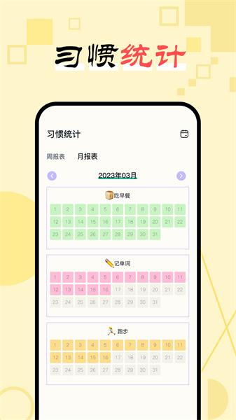 日常打卡助手app是一款通过目标打卡来帮助养成自律好习惯的软件。用户可以提前规划计划,并设置提醒功能,有效管理时间,避免拖延症。该应用能帮助用户养成日常习惯,规划日程,提高时间管理能力,助力正向生活。每天坚持打卡,培养自律好习惯,告别拖延症。日常打卡助手软件是一个神器,助力用户达成目标,养成好习惯,专注学习、工作、成长。支持早起、学习、跑步、减肥、瑜伽等打卡,帮助用户改掉拖延症,提高自律。