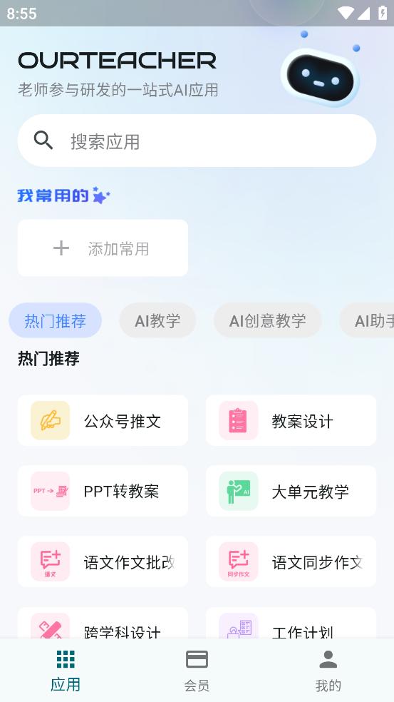 ourteacher官方下载最新版本是专为广大教师制作,软件拥有作业批改,工作计划,教案设计,工作总结,音视频转文字等等功能服务,可以助力教师更智慧教育及工作。