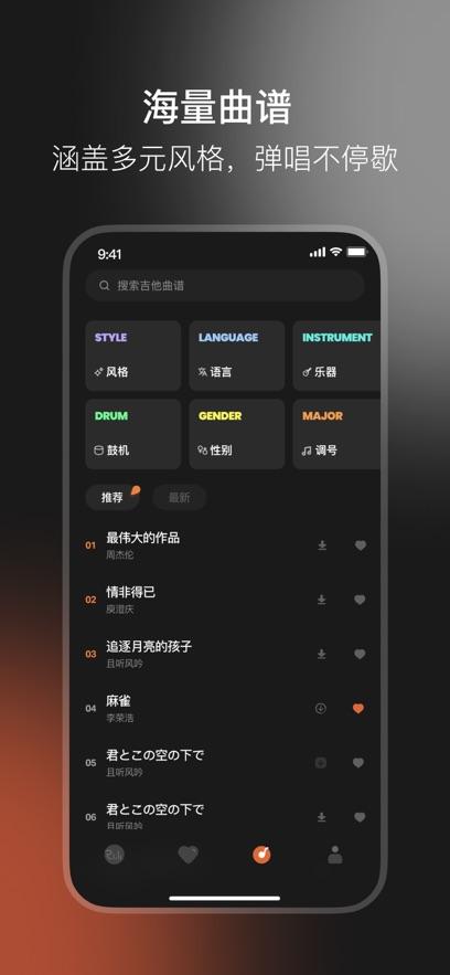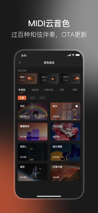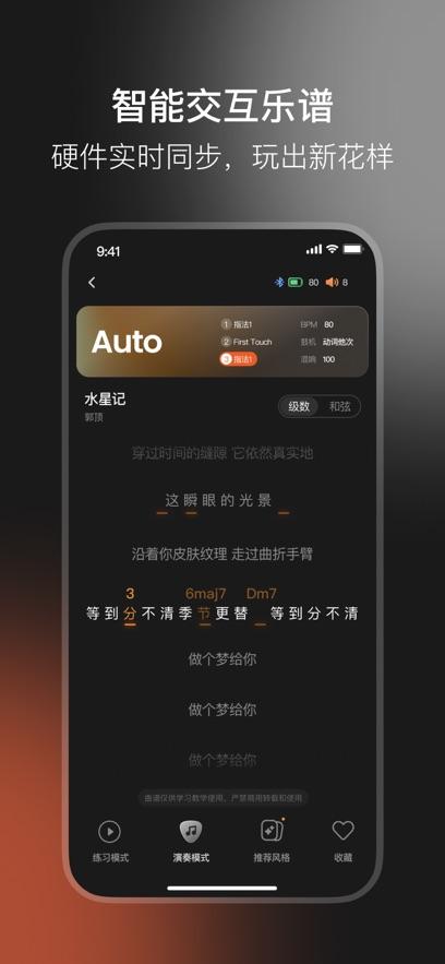 用户可以通过Rheoflow App的曲库弹唱、节奏鼓机、和弦伴奏等功能,实现快速上手弹唱,令歌曲演绎更具表现力,获得一种全新的演奏体验。